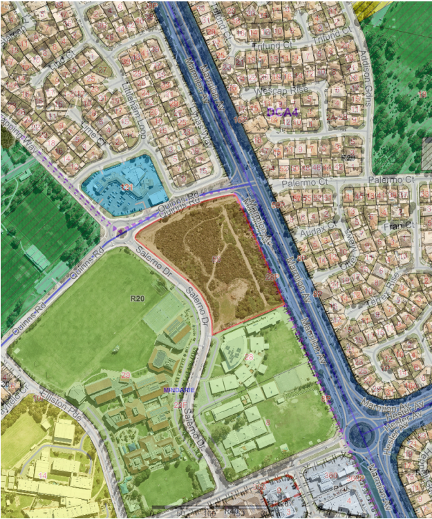 - Rezoning a portion of 50 Salerno Drive, Mindarie (the subject lot) (2.75 hectares) from ‘Private Community Purpose’ to ‘Residential’. The remaining southwestern 0.50 hectare portion of the subject lot is intended to be retained as ‘Private Community Purpose’.